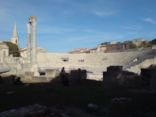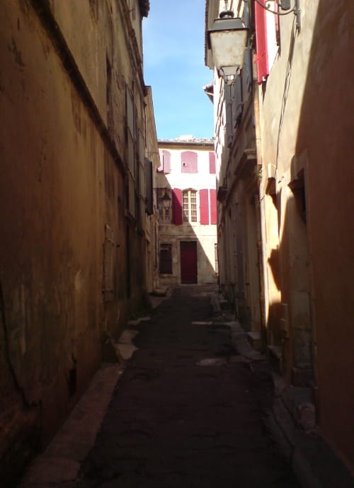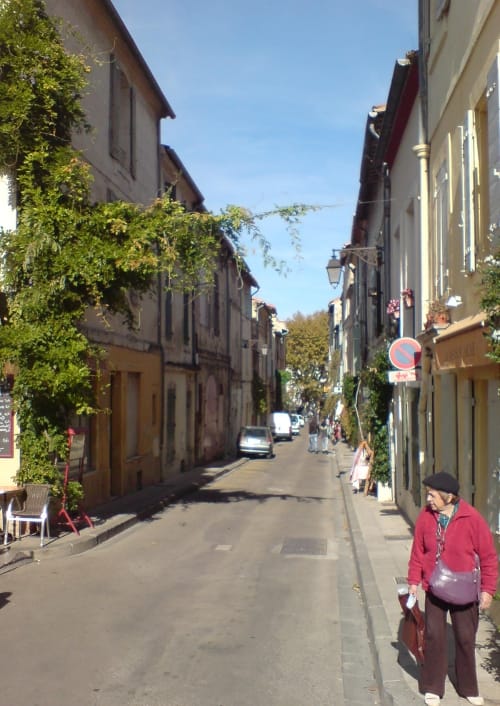 We took an espresso, and walked through the really charming lanes of Arles, again, down as far at the Rhone, then back. Just really sucking in the atmosphere. Lively. Happy. Not like Carpentras. After having made those notes about Gallic vs. Ligurian culture, more Ligurian. Happier. And better style. Possibly even than Avignon. Lots of young people around. Hanging. Lots of schools and colleges and institutes of higher learning. And bands of students moving in schools like dark fish.