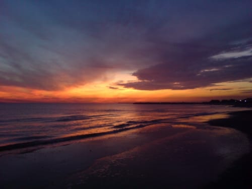 From place to place, hotel to hotel, down the front, and ringing around trying to find a room. Those available were vomit-making in style, if cheap enough – sub 100, the night – or else nausea-inducing in price. Our last port of call, where we have ended up, the Abrivada. A corner room, a carousel out the window. Sunset. And an excellent dinner of local oysters, from L’Etang de Tau, fish caught fresh, a sort of Alfonsino, called a Rouge; and a stew of local beef, a la Gardienne. Accompanying wine, from Arles. Nice sec. The best service we’ve had in France. Young guys but serious about the business.