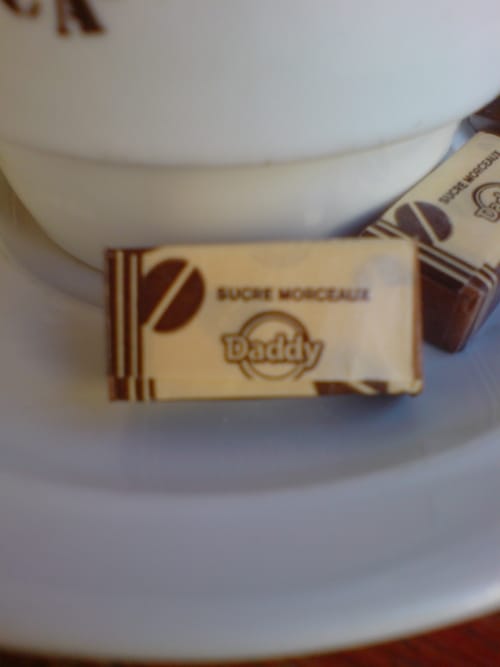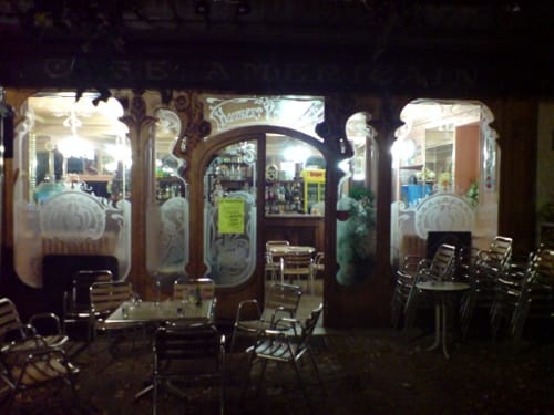 Up the hill to the Cafe des Arts, another figure resembling someone from the far distant past: J., let us call her that. Short hair. Brusque. Running out for a fag after sorting us out with a petit dejeuner formule – breakfast set menu – of croissant, weak doubles – see note earlier about doubles and strong meaning for the French long and weak – coffee, orange juices, natural yoghurts, baguettes, butter, jam, fine. All we needed.
