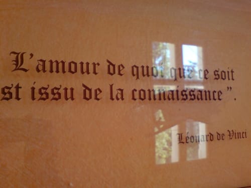 Clos Luce, Leonardo da Vinci’s hangout under his sponsor, Francois I, a sad affair. Typically – perhaps -, the French more interested in the ethical views and philosophy of Leonardo than the pragmatics of representing his mechanical and scientific achievement. A speaker in a tree gave, in language of choice, a selection of the sayings of the great man. Leonardo on… love; …on death; …on life; …and so on. But the place was rundown. Many of the exhibits didn’t do what they were supposed to. I alerted the ticket lady to a leak on Leonardo’s breakfast table, escaping the bucket set on the floor. Which was, as China Mieville would say, attentively unseen by the other visitors. Along with the set of pressed tin shelves at the back of the room. I got into trouble with an American woman – Americans would seem likely candidates for the cult of Leonardo’s genius – insisting we not touch the poorly fabricated models of differential gears, fitted with handle, to turn. By hand. But the gardens were lovely to walk around, albeit that at the bottom of the grounds there sat a perfect row of Alfa Romeos with for sale signs discreetly in the front windows. Why we didn’t find out. Perhaps because Leonardo invented the clockwork car.