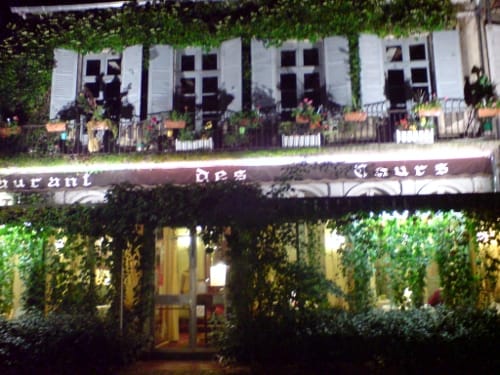 Moulins is totally unlike anything except perhaps a faded bourgeois alpine town in… Bavaria? Except for the unmistakable Hausmannian houses. Our hotel, the Hotel de Paris, in the middle of renovations that have already taken years and will carry on for many more, according to our new friend F., who plied us with bottles of wine from the region, Saint Pourcain, all night, and presented with a flourish three bottles to take with us, on the house, secretly, our Hotel is emblematic of the place, grand, stuck in the middle of refurbishment, refurbishment having run aground, but nevertheless continuous. Charming F., with his All Blacks tie. The biggest rugby fan in France!