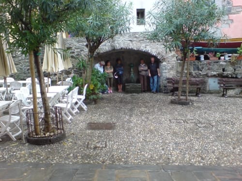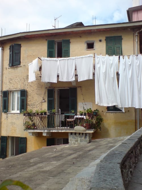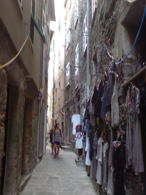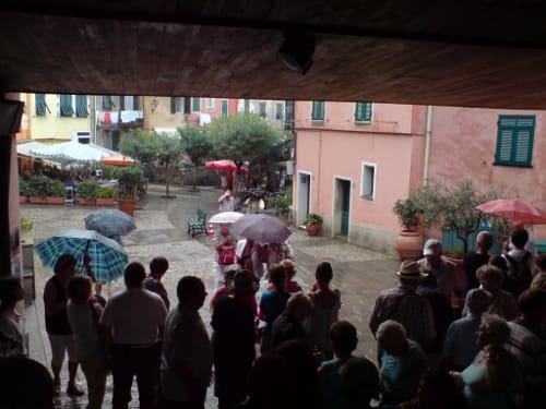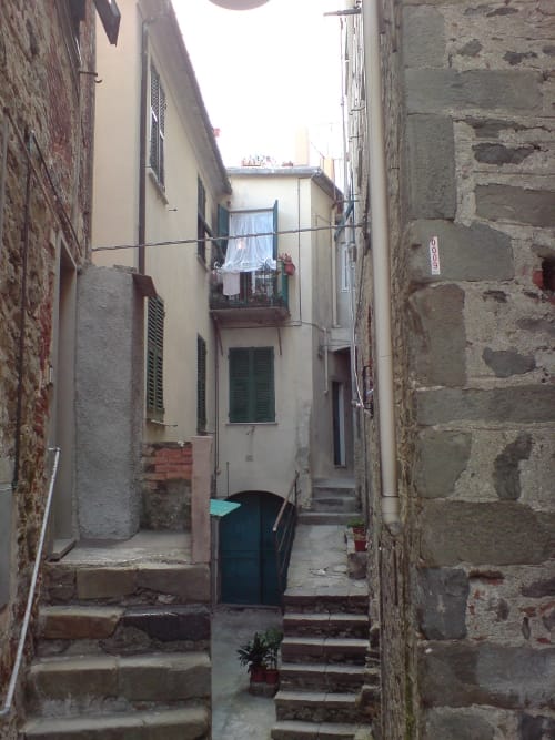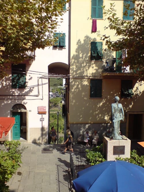 The message of the Cinque Terre comes undone in the telling. It’s worrying to see, even when one is among them, the masses surge sweating and thirsty and hungry and tired into Corniglia’s narrow streets and alleys, occupying steps, piazzas, benches, taking the water from the central public faucet, putting it in their bottles, blithely crossing frontyards, back stoops, while the locals try to get used to their roles as stage-managers for the experience the tourists are having, and make the best of it, or as scenery for their trips, local colour.