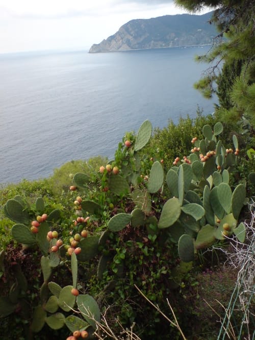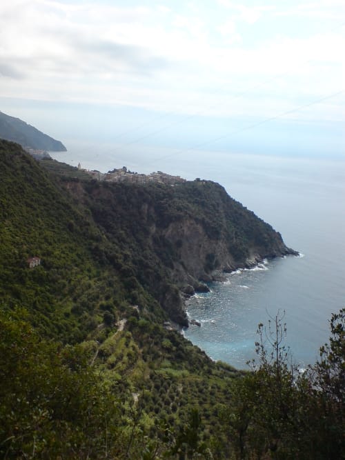 We breakfasted and headed out on the path to Corniglia, the next of the Cinque Terre towns up the coast, supposed to be an hour’s walk. It was early enough that the path, one of the many sentieri, pathways, connecting the towns up and down the coast, had not yet filled with tourists, grimly well-equipped Germans, loud Americans having conversations about things with absolutely no connection to where in the world they were, Spanish, Israelis, over-adventurous Aussies, for whom the whole thing could be written off as an afternoon stroll, in other words, people we did come across later on the track but thankfully not all at once.