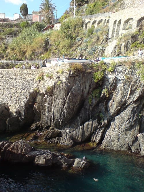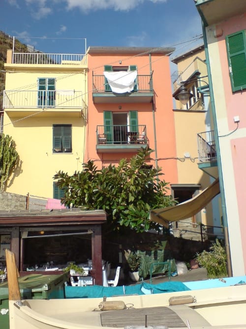 Back in Manarola we swam in the deep clear water of the pool beneath our window, the fish hardly perturbed, noticing also spiny sea urchins near to where we were standing on a ledge in the water. Beautiful.