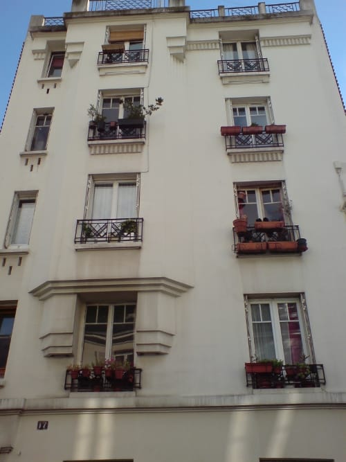 We walk from the station through a Paris of boulevards and cigarette sellers, streets devoted to suits and bridal attire, corn on the cob being char-grilled in shopping trolleys, French Algerians and Africans, a mix of skin colours we’ve seen little of in Germany. Dodgy street life but vibrant and exciting.