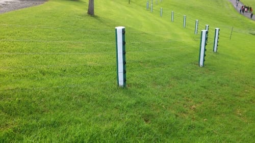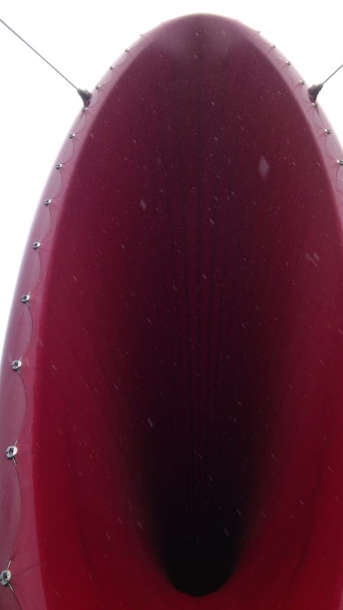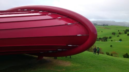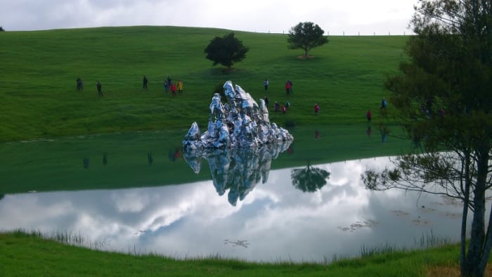 The best view of Graham Bennett’s Sea / Sky Kaipara, a series of prismatic rejects from the giant glasshouse project of the the immortals, elicited the same response from all the passers-by I happened by passing: It looks temporary. Look! It’s not even tethered down properly. It seems impermanent. Are they still finding the right spot for it? (Note how forward slashes prevail in these titles.)