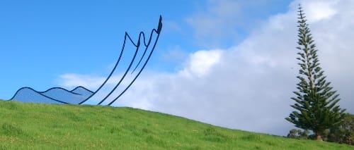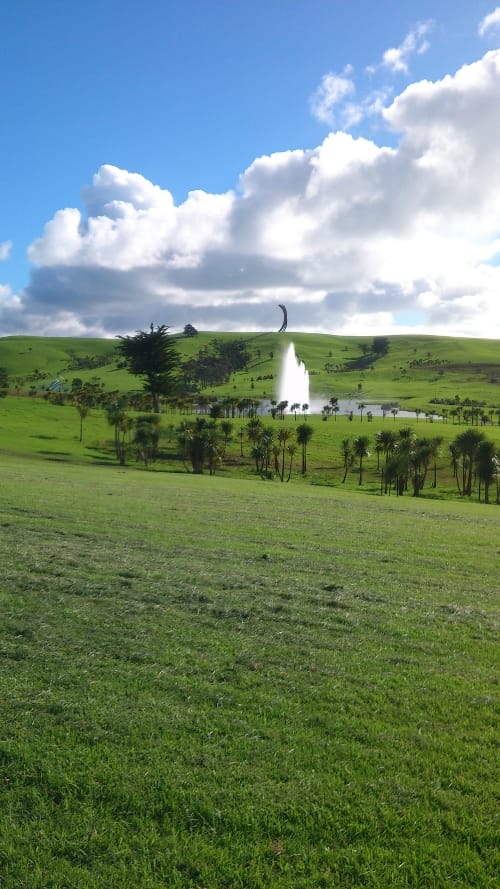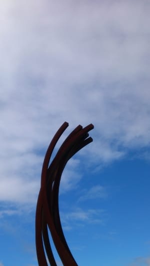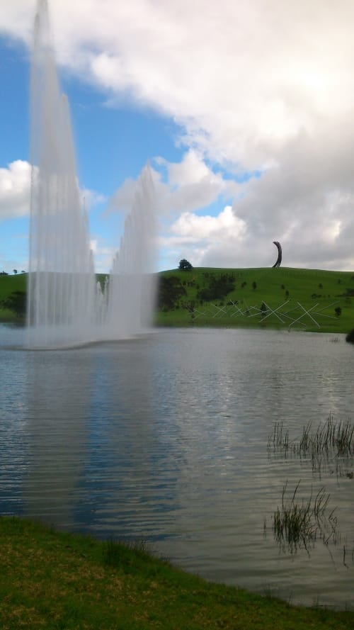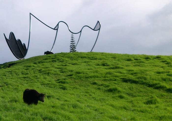 I see I haven’t mentioned or recorded in image Jeff Thomson’s corro giraffe, Len Lye’s Wind Wand – looking like an aetiolated 80s lamp from a rape-free zone – or Andy Goldsworthy’s Arches. The last we looked down on from the hills, hearing the digger returning to mud and water the littorals of the Kaipara.