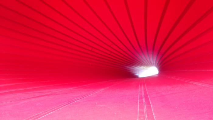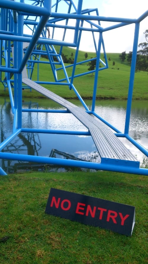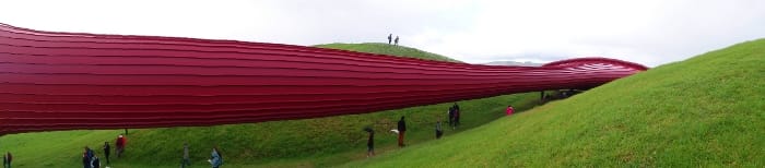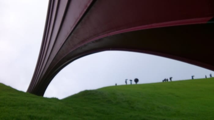 The Mermaid, who, like Anish Kapoor’s Dismemberment, Site 1 says, No fun. No climbing. No ride. Keeping itself to its own transition. This cube bridge done by Marijke de Goey inviting transgression followed the line of the hills behind in isomorphism or parallelism.