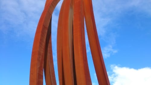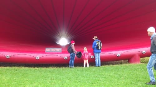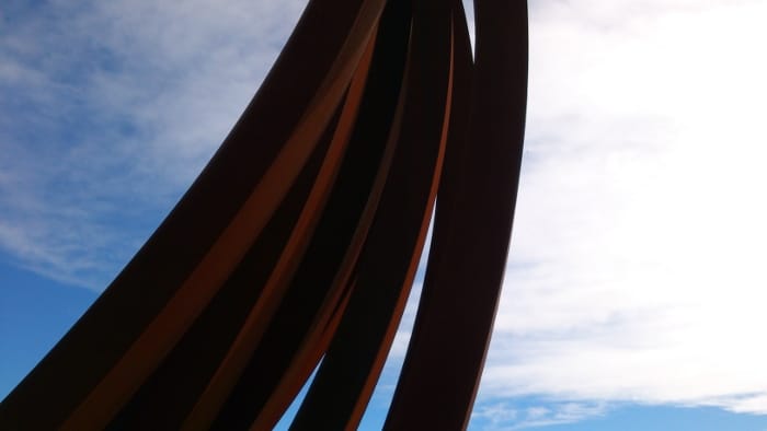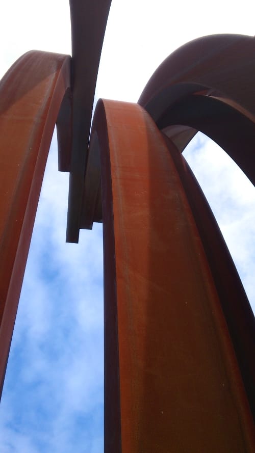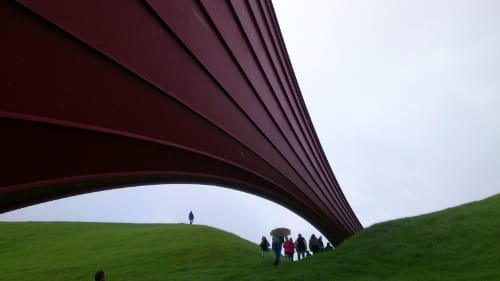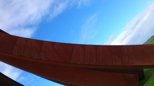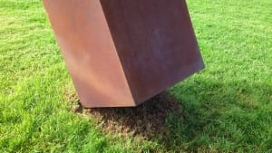 The people seemed to love this work. Most wanting to have the obligatory novelty shot taken. Stand there, as if you’re holding the curve up! Or: Lie down on the oxidised steel boxing! Now smile!
