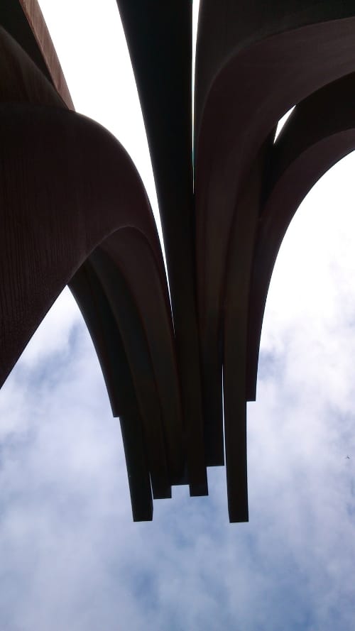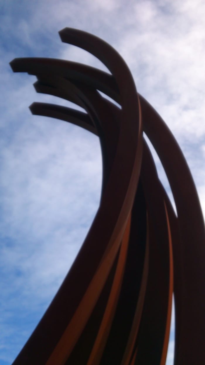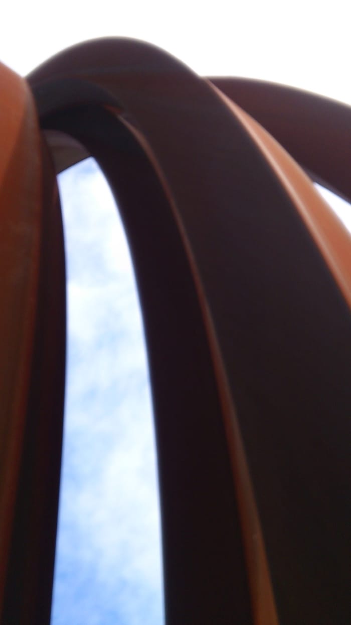We realised what I was reacting to when I said I couldn’t get comfortable with this work, Bernar Venet’s. It is an uncomfortable curve. And unlike some of the others I felt nothing with or for not a poor use of colour or materials, including the use of paint, which in sculpture I am happy that time had the Greeks halt. An uncomfortable arc that god’s fingernail parings follow. No calmness here. And fingernails indeed, since there are eight of them.