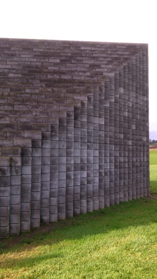 Approaching Sol LeWitt’s Pyramid (Keystone NZ) I was thinking about breezeblock. Maybe prisons. Maybe cheap housing. Maybe perm-mat housing. And basements smelling of wet concrete. Without a breeze. Blocked in. The cavities in the blocks empty as morgues. Air-morgues.