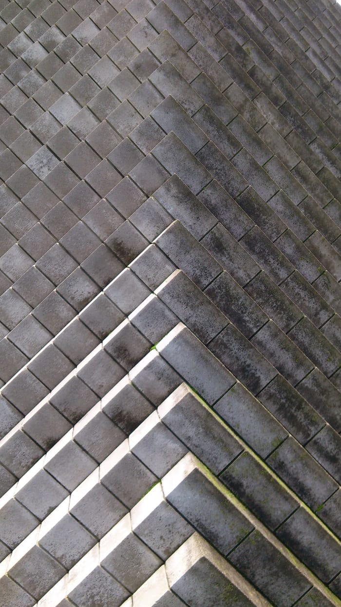 What breathes here is the play of light on the blocks. There was a pink lady watching me to see if like the kids preceding us I would dare to climb up Sol LeWitt. Pink high-viz jacket. But it’s not a pyramid of course. It’s a trapezoidal wedge.