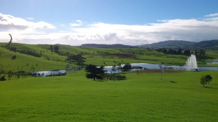 The sound of earthworks was constant at the Farm, echoing over the hill from the Kaipara, where a digger was at work removing mangrove, opening up swathes of waterfields. The Kaipara as waterfeature to go with the land – collected by Serra – as lawn?