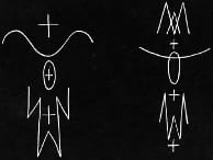 – Ad Reinhardt, first figure (inverted) from Symmetrical Three Figure Hatch (Male into Female), 1946