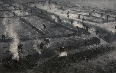 – Zhang Huan, Seeds, incense ash, charcoal & resin on canvas, 2007