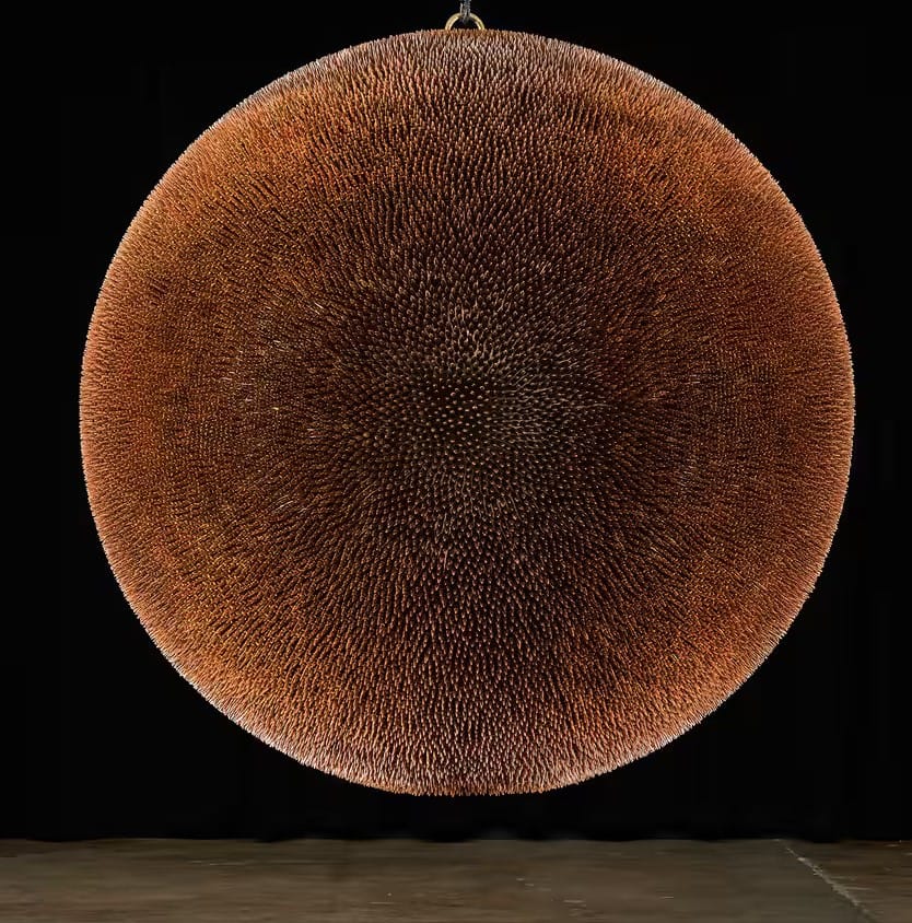 In 1993 [Robert Longo] made Death Star, consisting of 18,000 rounds of ammunition suspended in a sphere. It evoked the 18,000 American gun casualties the previous year. In 2018, he updated that sculpture, this time using 40,000 bullets – roughly the number of gun casualties in 2017. This orb hung from an I-beam at Art Basel – a mirrorball for a death-themed disco. “It’s more about creating some kind of beauty out of something horrible,” he said then, “and at the same time hoping that it will make you personally think, ‘What am I going to do about this?’”