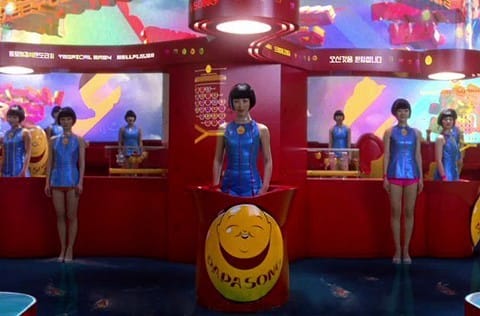 may sound more like "boolyfaood wooorild" but is a transliteration of Boulevard World. . . I was tempted to go into the pyramids and either shoot things if not quite understanding what. Then, isn't that always the way? . . . also of note, a demonic personage and a huge banana!