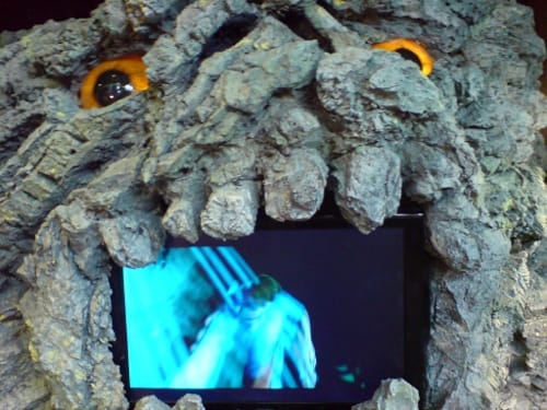 may sound more like "boolyfaood wooorild" but is a transliteration of Boulevard World. . . I was tempted to go into the pyramids and either shoot things if not quite understanding what. Then, isn't that always the way? . . . also of note, a demonic personage and a huge banana!