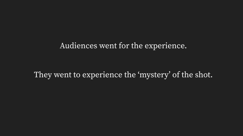 To appreciate it we have to go back to the story of origins. Of the cinema. Of film. And ask audiences,