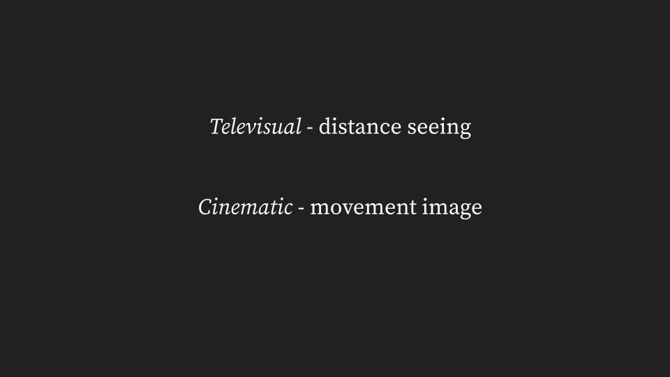 Is this snobbery, when considering art that is for the masses, where distribution and reproducibility is required? This is an argument that is ongoing. But Benjamin leaves the door open, where he says, the work of art and any thing, to the idea of aura having less to do with spatial distance or closeness, with spatial unapproachability, and with space, than with time. And this is what I think we see in the moving image, the movement-image: cinematic time. Screentime. Where it is wrong to say that the aura of the movement-image originates at the time of showing, because time originates from the showing.