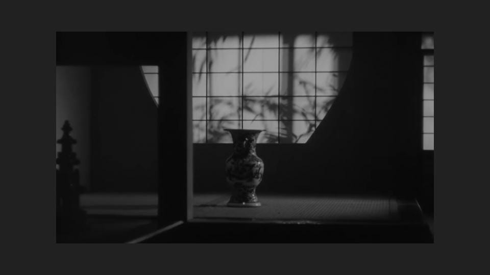 In the background of Ozu’s cutaway to the vase, the shadows of bamboo are moving on paper screens.