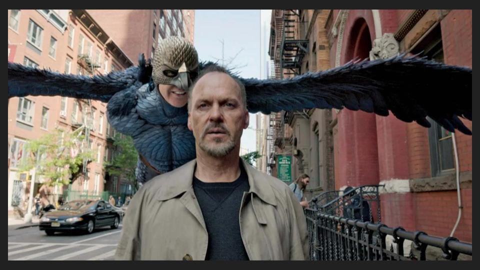 In the film Birdman for example, 2014, directed by Alejandro González Iñárritu. All the way through: VFX is used to sell the idea that the film is shot in a single take. And, in some ways, less obviously, for the protagonist’s alter-ego, who flies. Hence the title, Birdman.