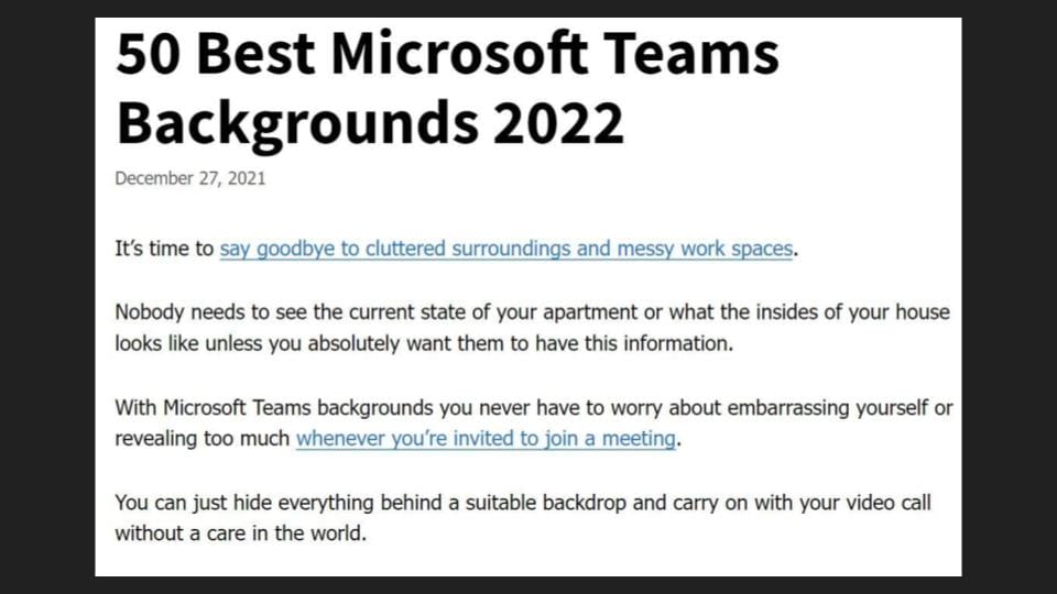 The conclusion to the article showcasing the best Teams backgrounds of 2022 on the Amazon affiliate site, Rigorous Themes, and, please note with me that these are not Riotous and Random Themes or Scenes of sheer abandonment, no.
